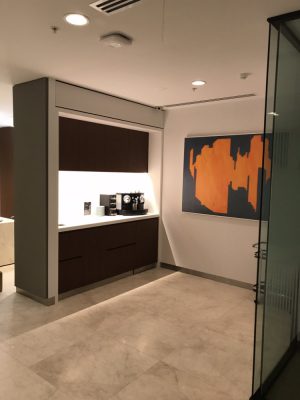 Feature reception counter with a Corian and veneer back wall, amazing display shelves, cabinets in meeting rooms and coffee points. Feature ceiling raft in the break out area. An awesome project – joinery supplied and installed by us on behalf of Intermain Victoria.