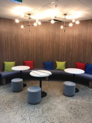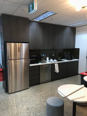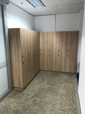 Feature baton curved calls, lockers model ship display and a tea area built and installed by Melbourne Commercial Interiors for Intermain Victoria
